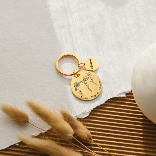 Personalized jewelry offers a heartfelt way to express your love. Our range includes meaningful pieces like the Birth Flower Engrave Ring, the Butterfly Style Name Necklace, and the Unique Minimalist Name Necklace. These items, such as the Birthstone Signature Name Necklace and Personalized Name Initials Birth Flower Key Chain, can be customized to reflect your mom’s unique style and personality.