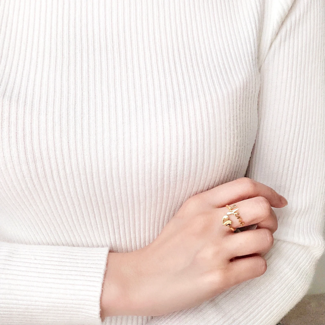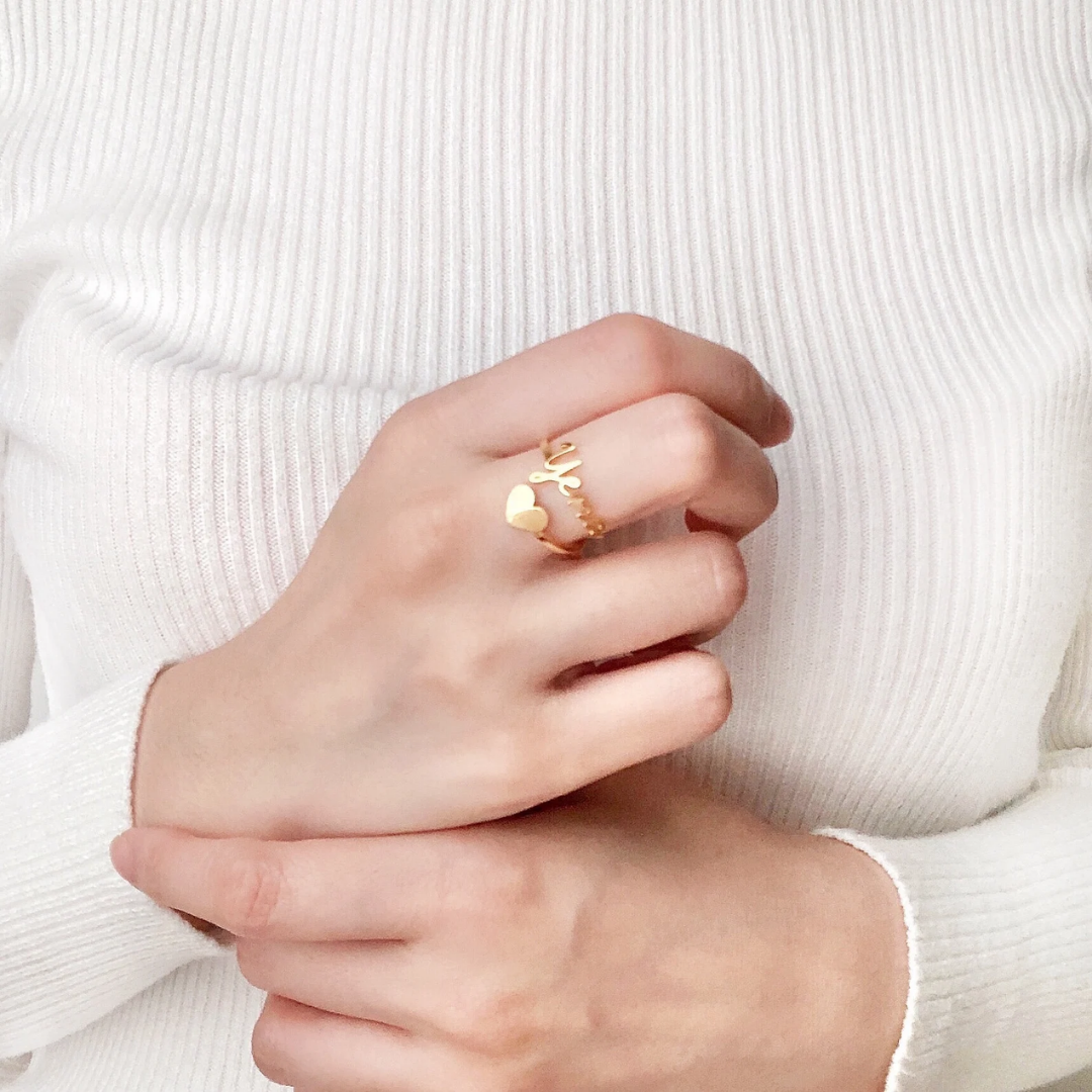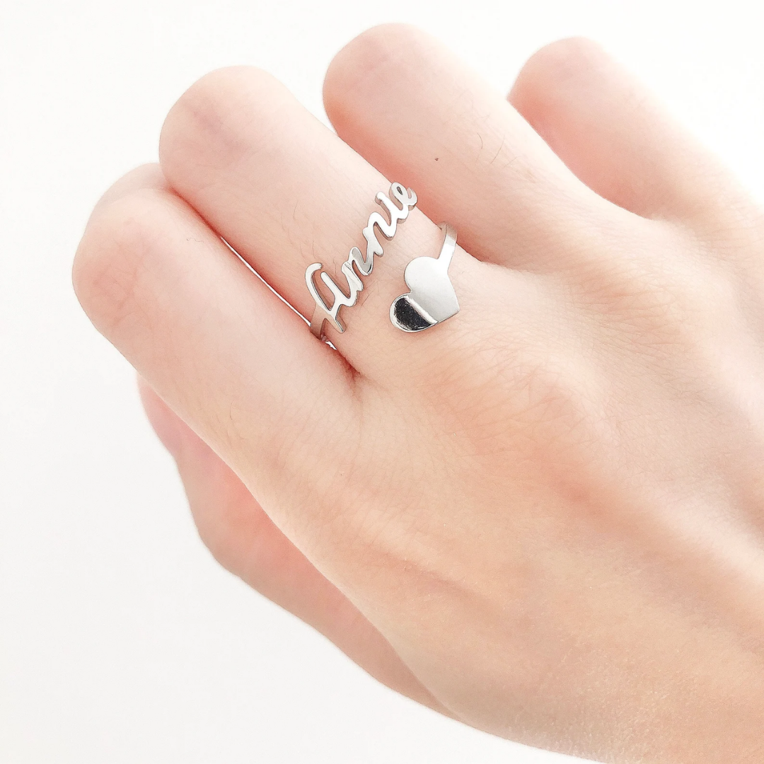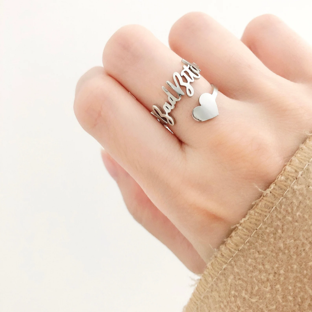 Custom Heart Name Ring- Adjustable