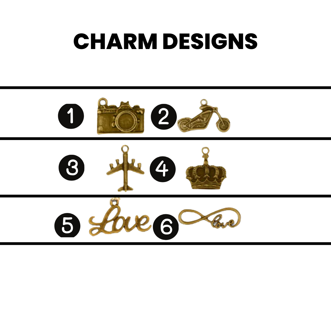 Personalization: Add name & charm (Embossed on a golden strip pasted on the wallet)